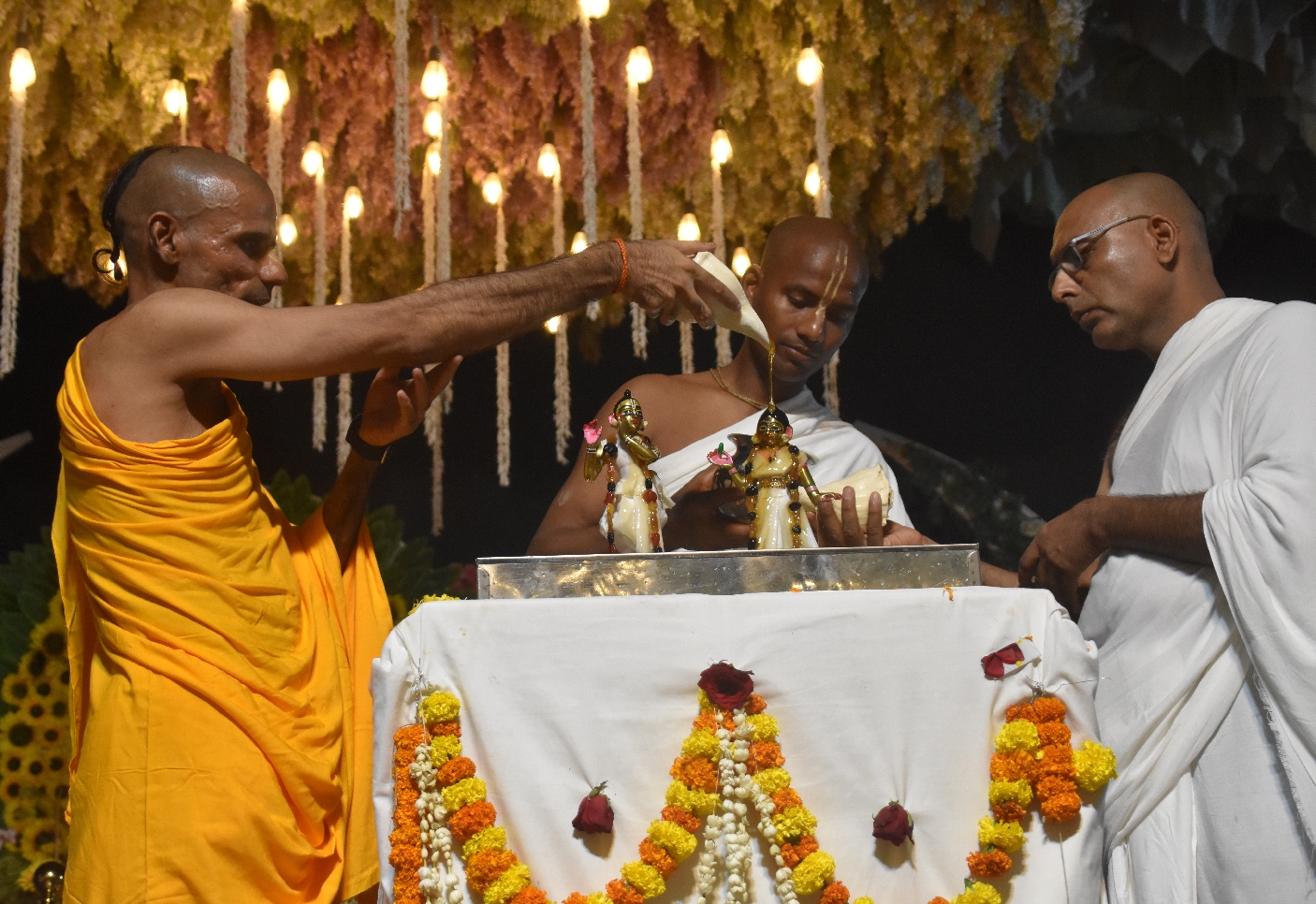 रजत कलश से पवित्र जल, दूध, दही, घी, मधु और फलों के रस से भगवान का अभिषेक किया गया। भक्तगण हरे कृष्ण हरे कृष्ण कृष्ण कृष्ण हरे हरे, हरे राम हरे राम राम राम हरे हरे का संकीर्तन कर झूमते रहे। नृत्य-नाटिका, भक्ति-गीत का मंचन किया गया।