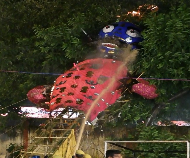 आयोजकों ने इस पुतले को जलाने की कोशिश की पर वह जलने से पहले ही नीचे गिर गया। भैसाली मैदान ड्रोन शो निरस्त कर दिया गया। पुतलों में आग जरूर लगाई गई लेकिन उनके जलने की तीव्रता कम रही। दिल्ली रोड स्थित रामलीला ग्राउंड में भी जलभराव होने से आयोजकों को परेशानी हुई।