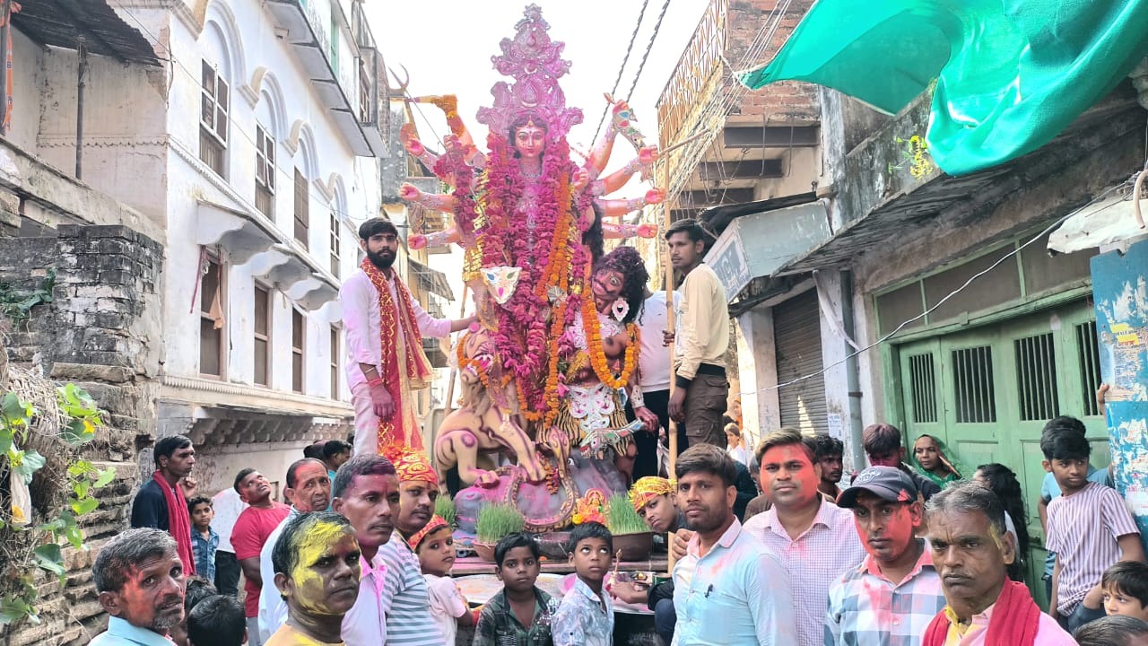 नगर के प्रत्येक गली-चौराहे से होकर निकले जुलूस में डीजे की गूंज, अबीर-गुलाल और जयकारों की गूंज के बीच भक्तजन मां भगवती की प्रतिमा के साथ भावभीनी विदाई देते हुए विसर्जन स्थल तक पहुंचे। भक्तों ने मां से अगले वर्ष पुनः आने का आह्वान किया।