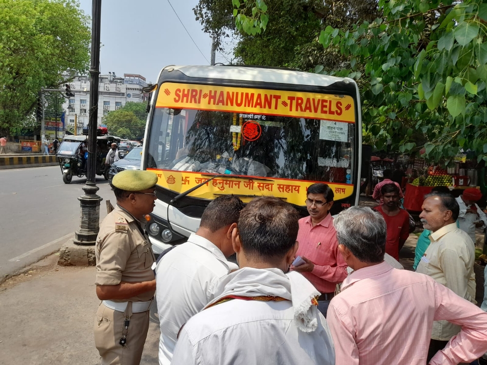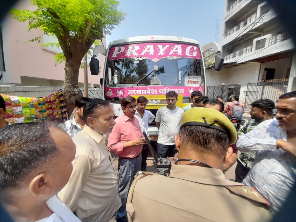सिविल लाइंस बस अड्डे पर डग्गामार बसों के न हटने पर विरोध प्रदर्शन के बाद कार्रवाई करते परिवहन निगम, परिवहन विभाग के अधिकारी। सौ. विभाग