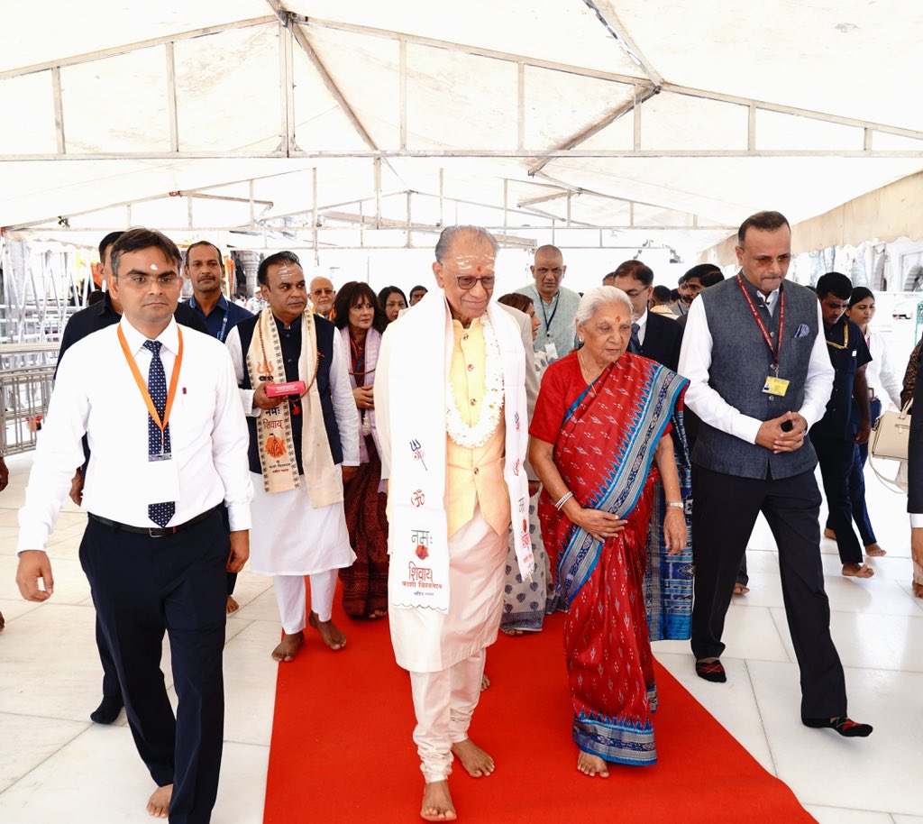 स्वागत समारोह में सभी को अंगवस्त्रम और रुद्राक्ष की माला पहनाई गई। इस स्वागत में मंगल स्वस्ति वाचन 11 ब्राह्मणों द्वारा किया गया, जो इस अवसर को और भी विशेष बना गया।