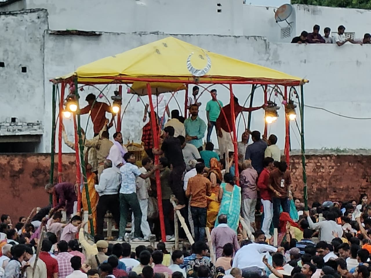 भीड़ इतनी की मानो लोग पानी की तरह बह रहे हों। आस्था अपने चरम पर थी । काशिराज परिवार के अनन्त नारायण सिंह अपने राजपरिवार के सदस्यों व दरबारियों के साथ दुर्ग से पैदल चलकर अयोध्या मैदान पहुंचते है । सुबह 5 बजकर 37 मिनट पर भगवान भास्कर ने जैसे ही अपनी आँखें खोली, माता कौशल्या ने अयोध्या के सिंहासन पर विराजमान श्रीराम व सीता साथ में खड़े भरत, लक्ष्मण, शत्रुघ्‍न तथा श्रीराम के चरणों मे नतमस्तक भक्त शिरोमणी हनुमान जी की आरती उतारी।