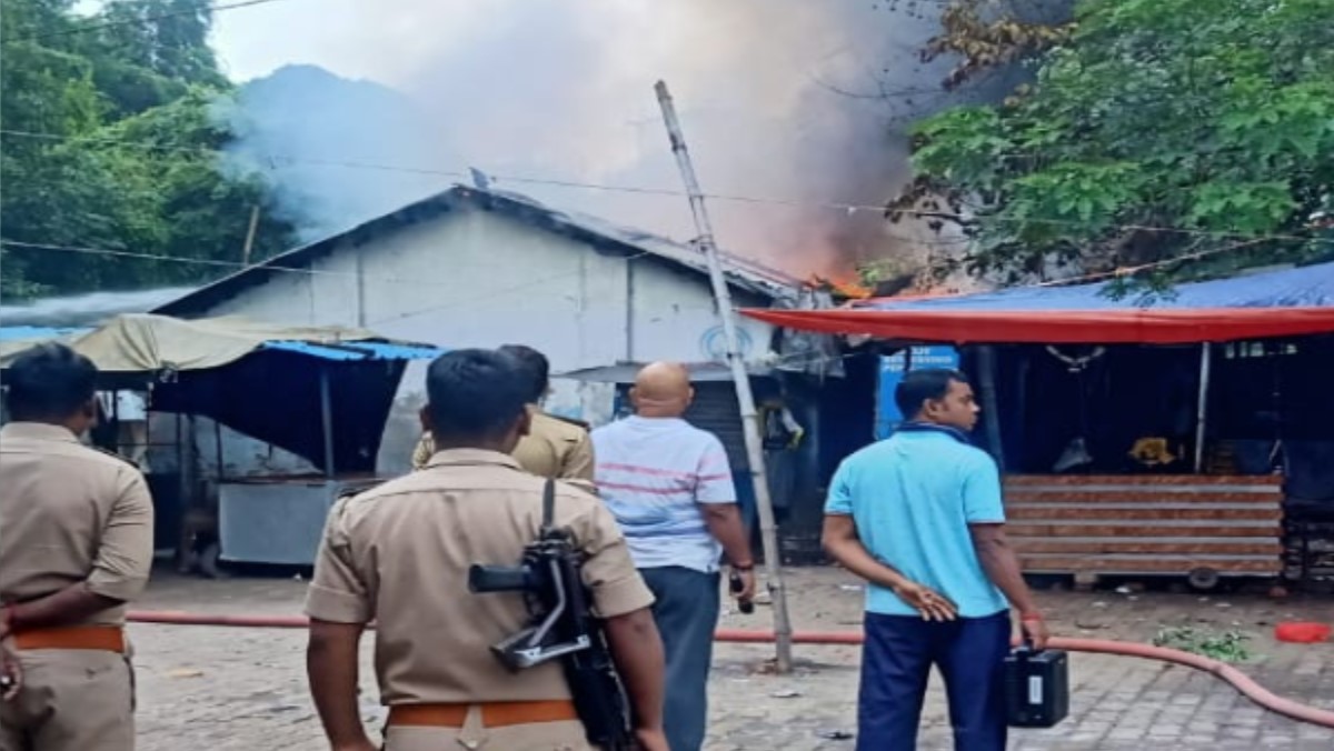 वाराणसी में कैंट थाने के पास लगी भीषण आग, आधा दर्जन दुकानें और कई बाइकें जलकर खाक