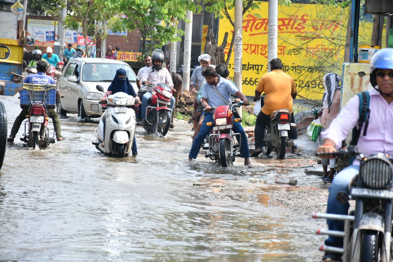 सीर गोवर्धनपुर वार्ड नंबर 23 में स्थित संत रविदास पार्क के सामने का मुख्य मार्ग गड्ढों में तब्दील हो चुका है। स्थानीय निवासियों का आरोप है कि पिछले छह महीनों से सीवर का पानी सड़क पर बह रहा है।