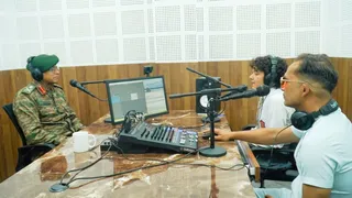 सामुदायिक रेडियो स्टेशन में सूर्य कमान के जनरल आफिसर कमांडिंग-इन-चीफ लेफ्टिनेंट जनरल अनिंद्य सेनगुप्ता का साक्षात्कार करते आरजे
