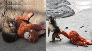 सोशल मीडिया पर छाया नन्हा बंदर 'पंच': मां ने त्यागा तो खिलौने से लगाया गले (फोटो- एक्स)
