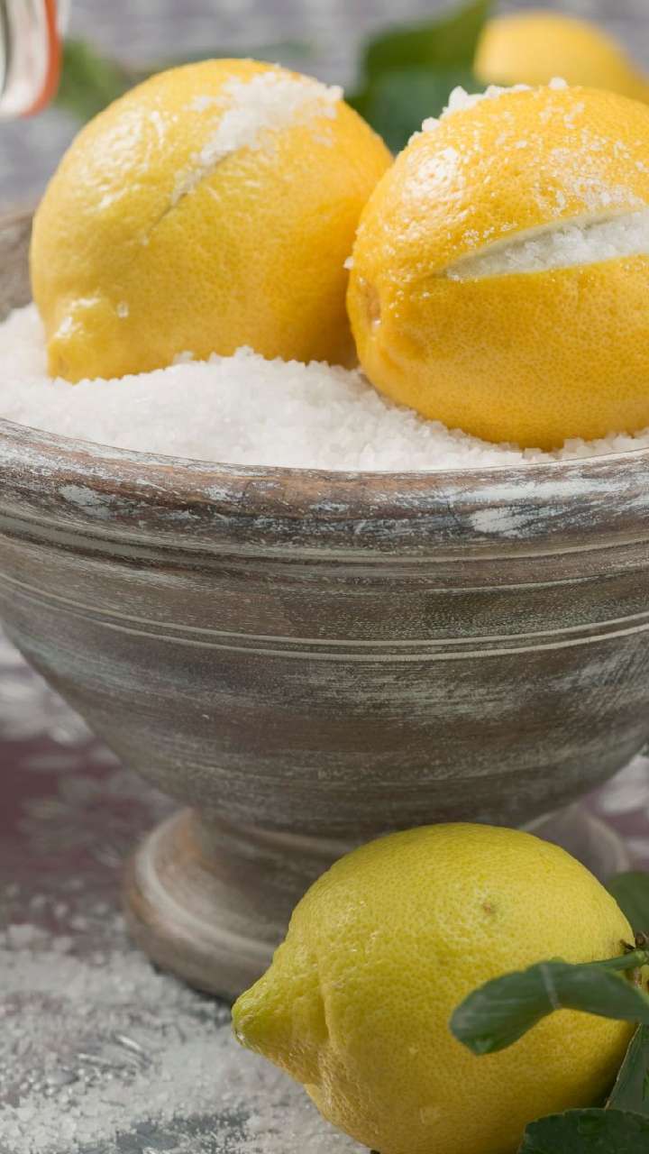 नींबू को आधा काटकर उस पर थोड़ा नमक डालें। इसे पीतल या तांबे के बर्तन पर रगड़ें। कुछ मिनट के बाद गुनगुने पानी से धोएं। बर्तन तुरंत चमकने लगेंगे।