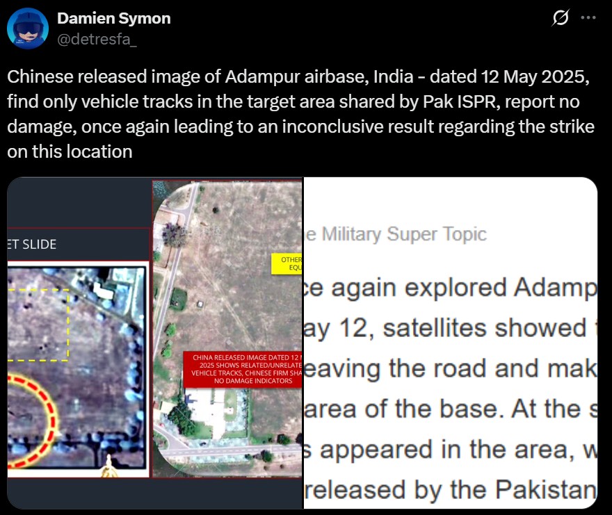 - चीनी उपग्रह कंपनी द्वारा जारी की गई छवियों का उपयोग आदमपुर पर एक सफल पाकिस्तानी हमले के दावे का समर्थन करने के लिए भी किया गया था।